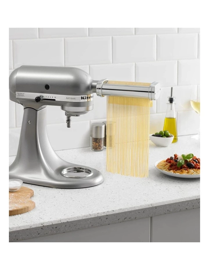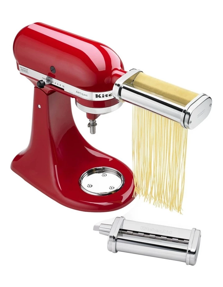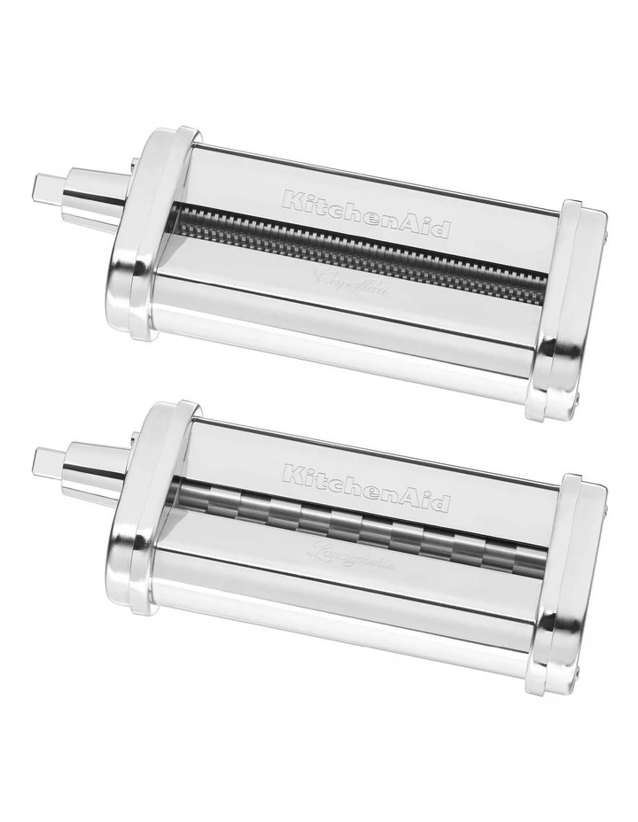 With two included pasta cutting accessories, the KitchenAid Pasta Cutter and Angel Companion Stand Mixer Attachment Set allows you to cut your pasta into thick or thin slices using your compatible mixer. The KitchenAid Pasta Cutter attachment set is suitable for use with all KitchenAid stand mixers (not included).
