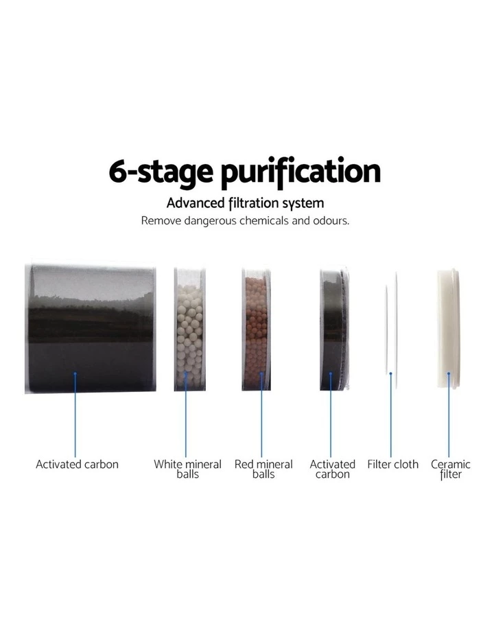 Thanks to its 6-stage filtration system that ensures your water tastes great and free of harmful chemicals and impurities. The water dispenser comprises a food-grade plastic container and metal dispenser that features a high quality compressor. It comes with dual taps, to and cold water spouts and a hot-cold water on/off switch for easy use. The dispenser also an adjustable tray height and a large storage cabinet to store accessories.