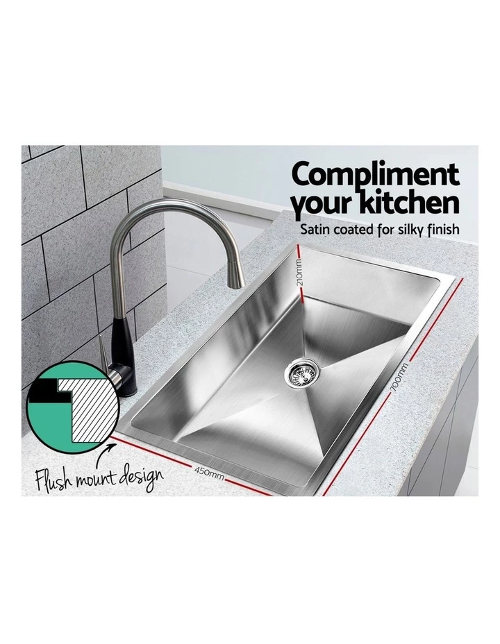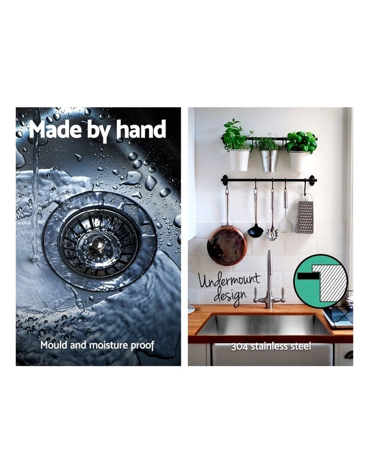 The Cefito Handmade Stainless Steel Sink is built to exacting standards so that you get the very best of quality materials and craftsmanship. It is crafted from heavy-duty food grade 304 stainless steel, unlike others that are made from inferior 201 grade or 304 imitations. Built to be scratch-proof, oil-proof and more importantly, bacteria-free, the silky-smooth satin-coated stainless-steel sink also features an X-flume design for easy drainage, deep and wide bowl for practicality, R10 rounded corners for safety and easy cleaning, eco-friendly anti-condensation paint, and five sound-deadening pads. Suitable for drop-in, flush-mount or under-mount installation, our stainless steel sink should have a definitive place in your uncompromising kitchen.