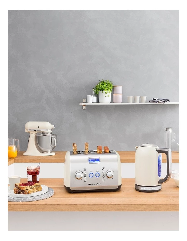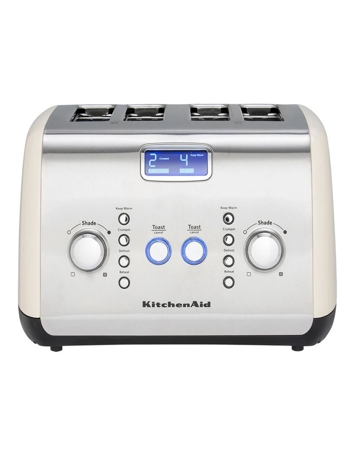 Preparing deliciously golden toast and crumpets is easier than ever with the KitchenAid Artisan Toaster. The motorised lift button gently lowers and raises your bread, and the blue LCD display keeps track of your personal settings, so you can enjoy your toast just the way you like it, every morning.