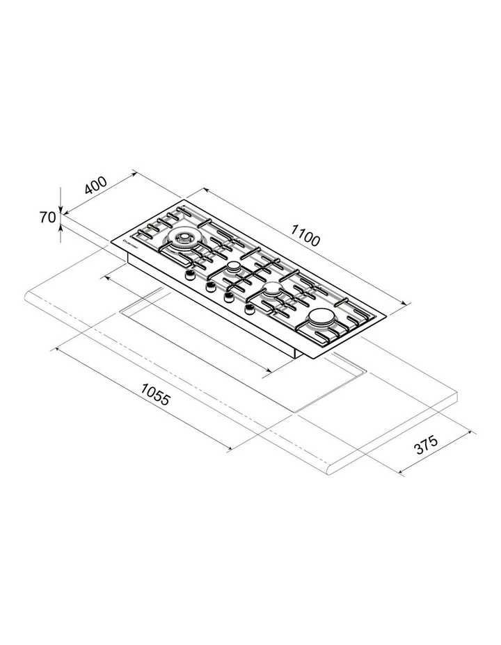 110cm Stainless Steel flush mount, built in gas cooktop with Commercial grade, cast iron, pan supports. 4 burners including a 4kW triple crown wok burner and Flame Safe protection. The dimensions of this stunning cooktop allow it to be safely installed in some kitchens where more traditionally sized cooktops may not. 5 year warranty.