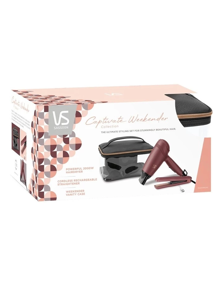 Escape for the weekend or an extended holiday with this ultimate styling set for stunningly beautiful hair wherever you roam. Pop the compact hairdryer & cordless straightener in the spacious vanity case, along with all your cosmetics, hair accessories, perfume & other holiday essentials.