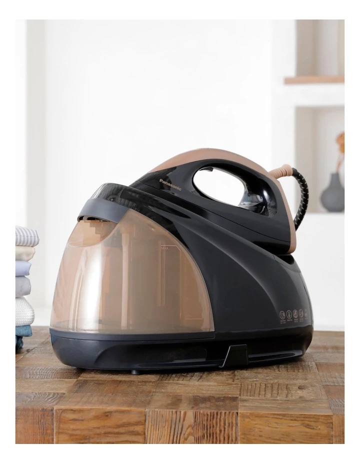 The Panasonic NI-GT5000NSJ Steam Generator Iron is perfect for large families and busy professionals. Its anti-calc technology, continuous steam design, and extra-powerful steam boost function is designed to tackle large loads, effortlessly cutting through wrinkles for dry cleaner quality results with minimal maintenance.