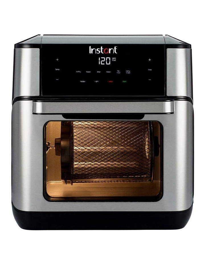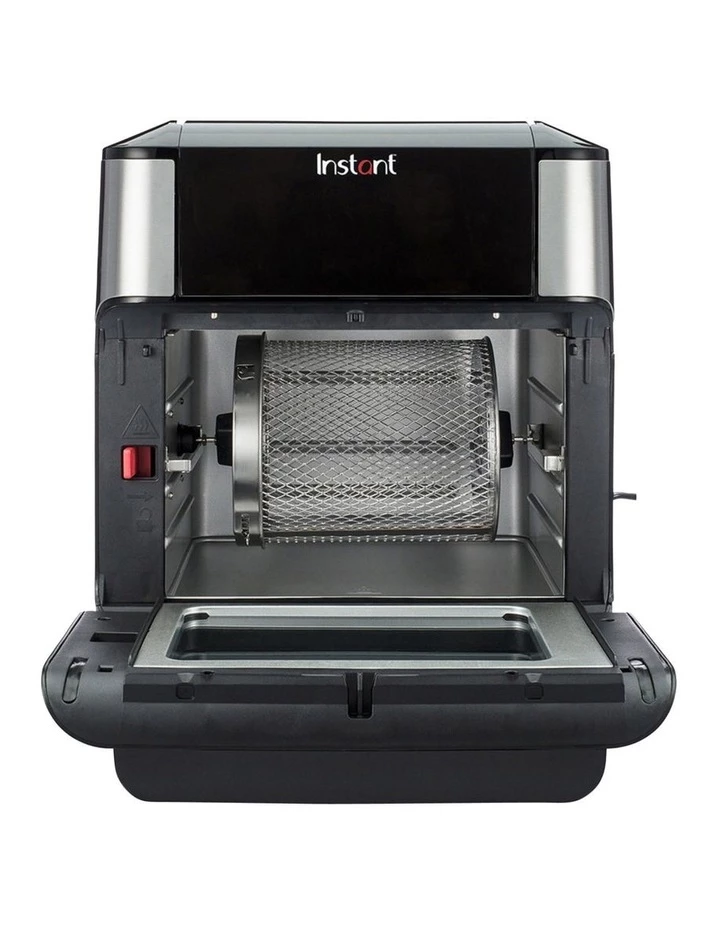 Rotisserie Roast a whole chicken using the Rotisserie Smart Cooking Program Easy to Clean : Minimal oil means minimal mess. Sleek surface wipes clean. The Drip Pan, Cooking Trays, Rotisserie Basket, Spit and Forks are removable and dishwasher safe Saves Time: The Instant Vortex Plus Air Fryer Oven heats in a fraction of the time of a regular oven, and cooks by circulating super-hot air around your food so it cooks evenly and locks in moisture.