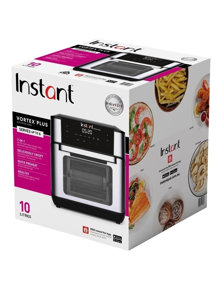 Instant Vortex Plus Air Fryer Oven 10L 7-in-1 Air Fryer Oven, Versatile and Convenient With 7 one-touch built-in Smart Cooking Programs You can fit both cooking trays at once to make multiple meals in one go with the large 10L capacity Fast and Healthy Cooking Get deep-fried flavour and perfectly crisp texture using little to no oil for healthy and tasty versions of your favourites EvenCrisp.
