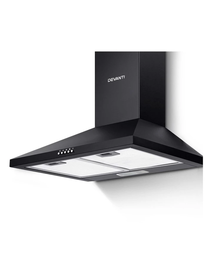 Say goodbye to smoky fumes and unwelcomed cooking odours with the Devanti Range Hood. With its high-performance motors, the black powder-coated steel range hood provides a steady upflow and filtered extraction of fumes and oil to keep your cooktop area clean and fresh after every use. With its 3-speed rocker button switches, the extraction speed can be adjusted to suit the circumstances. Other features include two non-stick 5-layer aluminium filters that are removable and replaceable and two bright 3W LED lamps to facilitate your illuminated cooking. The range hood is wall mounted and the chimney can be adjusted to fit the installation space.