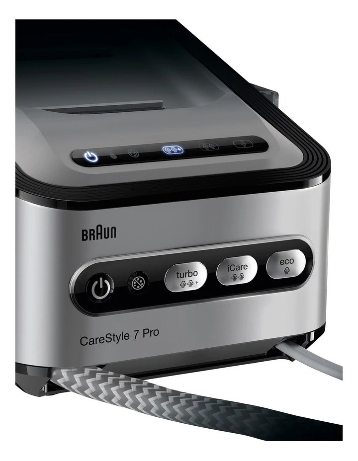 The new carestyle 7, braun’s best performing and award winning steam generator iron series, now features an innovative ergonomic design including a soft grip handle and an ultimate fastclean system that ensures a faster and easier descaling procedure. 3d backglide soleplate – guarantees 360 glidability over any fabric and any obstacle, 2400w power, eloxal 3d plus soleplate, ultimate fastclean system, icaretec smart textile protection, eco mode, turbo mode, high steam pressure and extra steam shot for optimum performance, excellent steam rate (125g/min), 50% less time consuming, safety auto-off, brauns lightest iron, extra large removable tank (2l), easy lock system.