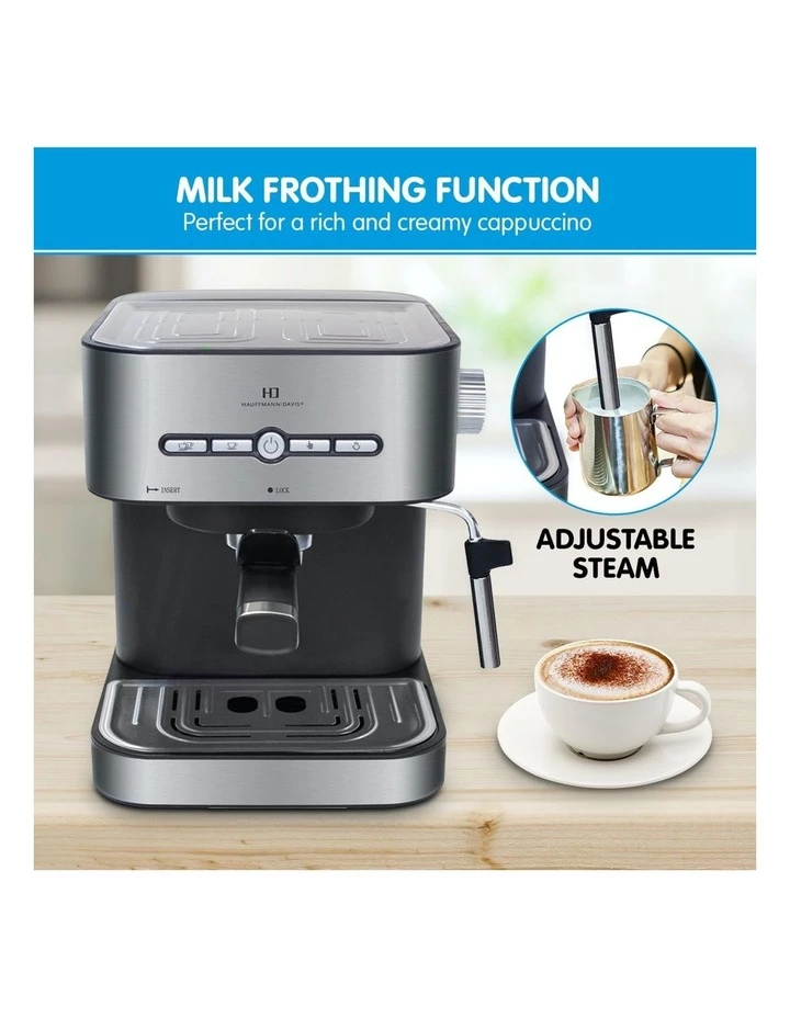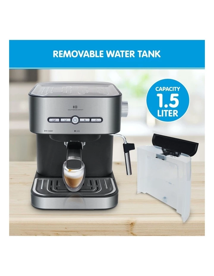 Wake up to delicious coffee every morning with the Hauffmann Davis 1.5L Espresso Machine. Featuring a milk frother, 15 bar Italian ULKA pump and a large detachable water tank, this automatic espresso machine is a coffee connoisseur’s must-have.