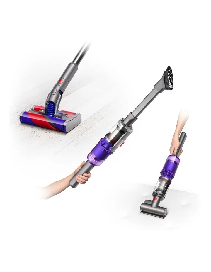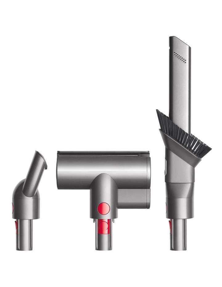 - Includes Omni directional Fluffy cleaner head, Combination tool, Mini motorised tool, Worktop tool, and wall-mounted Docking station.