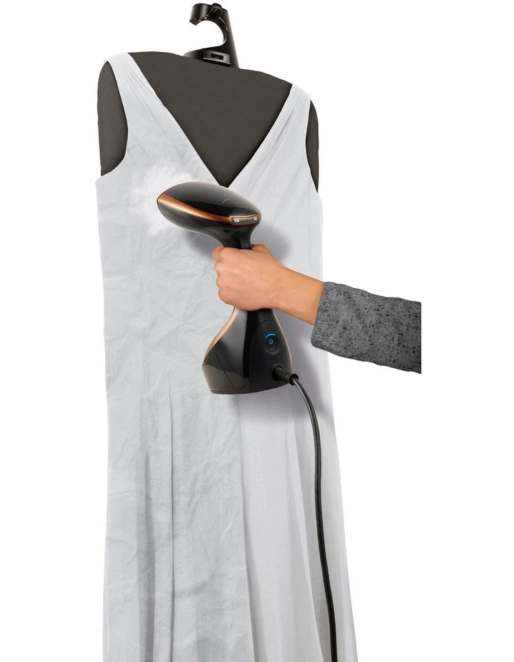 With exceptional steaming performance and a vertical support board for maximum convenience, the Tefal Access Steam Care handheld steamer is the perfect tool for last-minute touch-ups and steam precision, down to the last detail. This ultra-fast hand steamer joins forces with a vertical support board, for convenient, high-precision steaming that produces an ironing effect with a crisp finish. Achieve perfect and safe results on any fabric with three steam settings with up to 30 g/min continuous steam output to tackle thicker fabrics and stubborn creases. A cast aluminum heating soleplate produces better results than ever, with advanced technology enabling freshly-steamed garments to be worn immediately. With a quick heat-up time of just 40 seconds, your handheld steamer is ready to go when you need it, with a variety of enhanced features to round off the package.