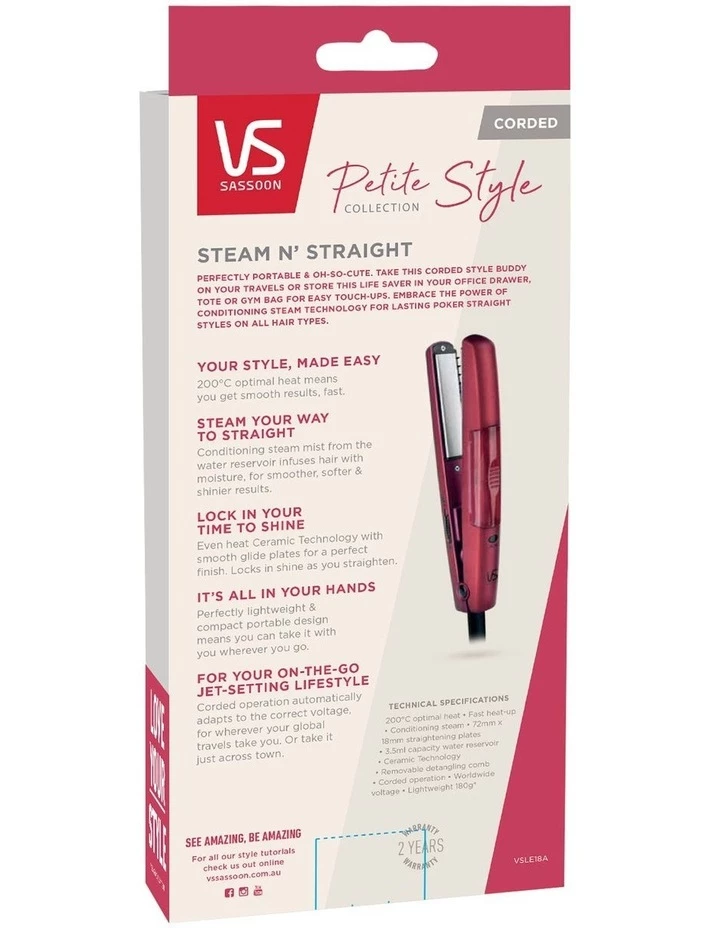 Take this oh-so-cute corded style buddy on your travels or store this life saver in your office drawer, tote or gym bag for easy touch-ups. Embrace the power of conditioning steam technology for lasting poker straight styles on all hair types.