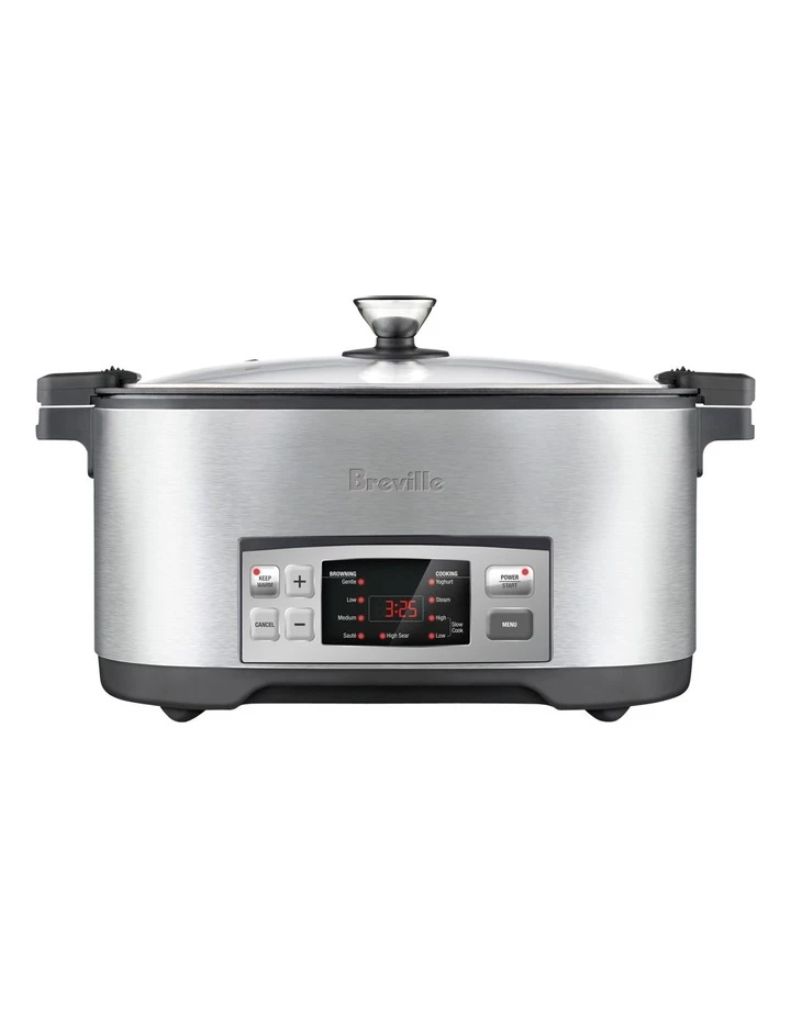 Large 6L family size capacity, 5 preset browning settings, countdown timer, large stainless steel steaming trivet.