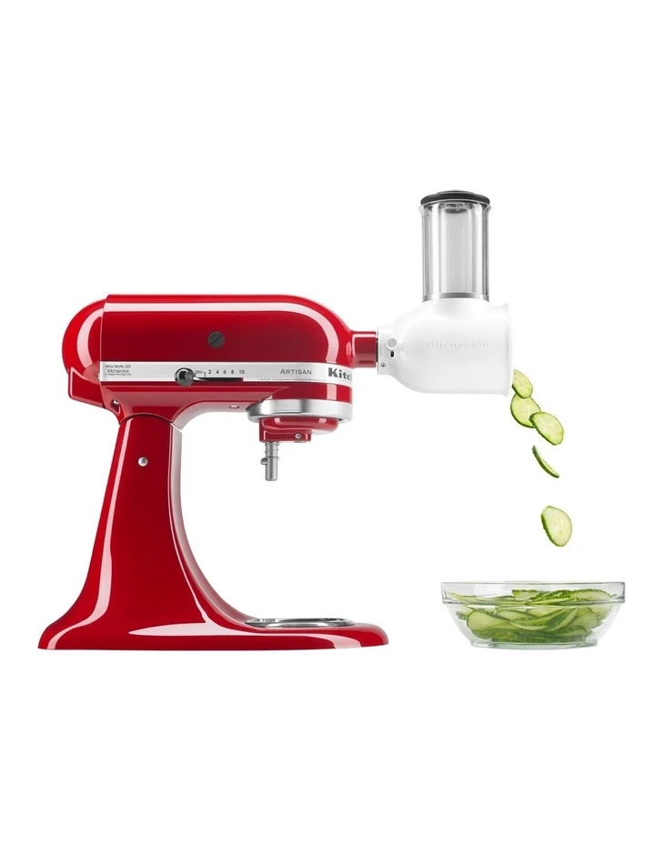 Medium and coarse slicing drums and slicing drum. Powered by the KitchenAid Stand Mixer, make quick and easy work of slicing, shredding and grating.