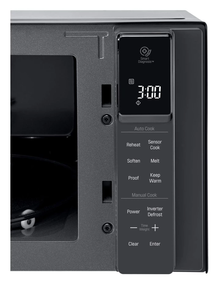 Sleek Minimalist Design. A single piece of tempered glass on the front door creates a modern, stylish appearance. Reduce cooking and reheating time with up to 1200W of power, compared to a 1000W LG conventional microwave oven. The Anti-Bacterial EasyClean interior coating makes cleaning simple and convenient. Just a few wipes are all it takes to clean the microwave interior. The coating eliminates 99.99 percent* of harmful bacteria from the surface.