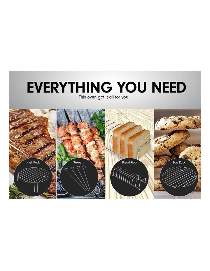 CONTENTS: * 17L Convection Oven * Stainless steel extender ring * Low rack * High rack * Tongs * Operation manual * Lid Holder * Bread Rack * Skewer