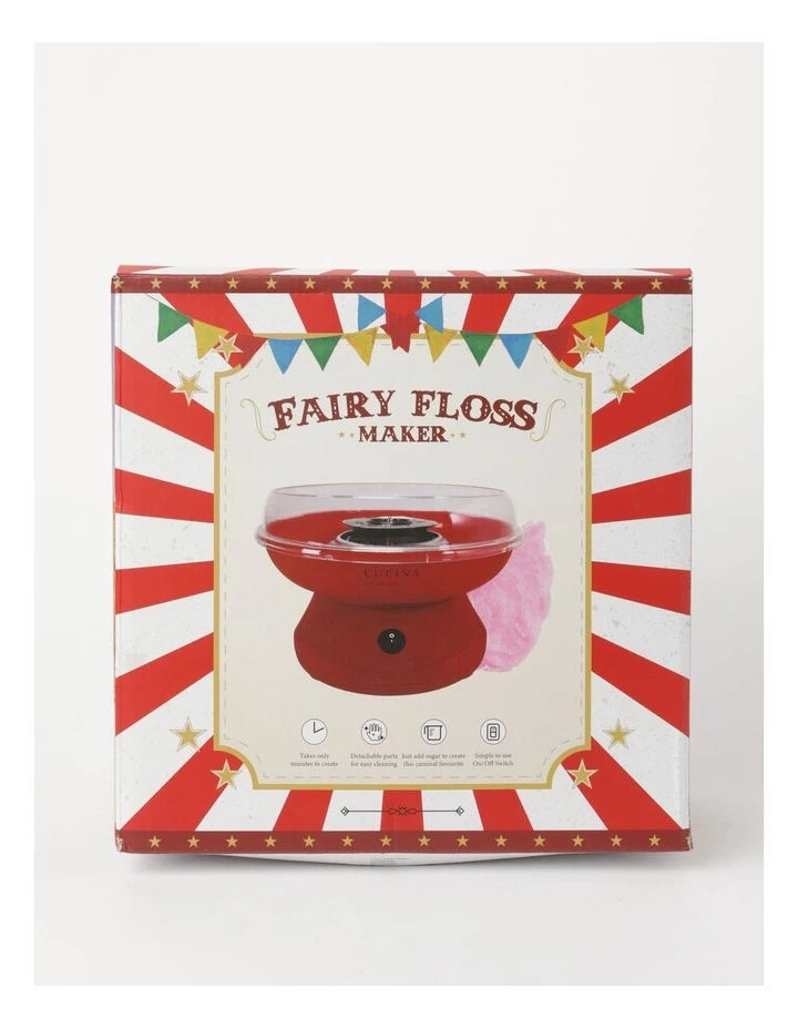 Just add sugar to create this carnival favourite. Takes only minutes to create. Includes: Sugar measuring spoon and 10 fairy floss wooden sticks, Non-slip rubber feet for extra stability when making your fairy floss. Detachable parts for easy clean. Easy On/Off switch and fun to use.