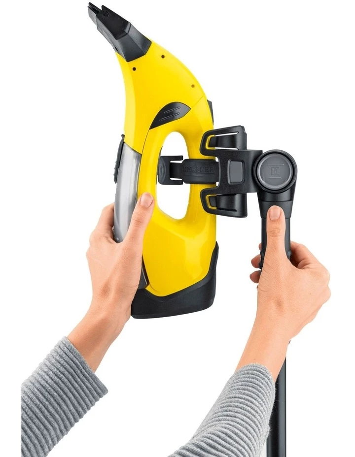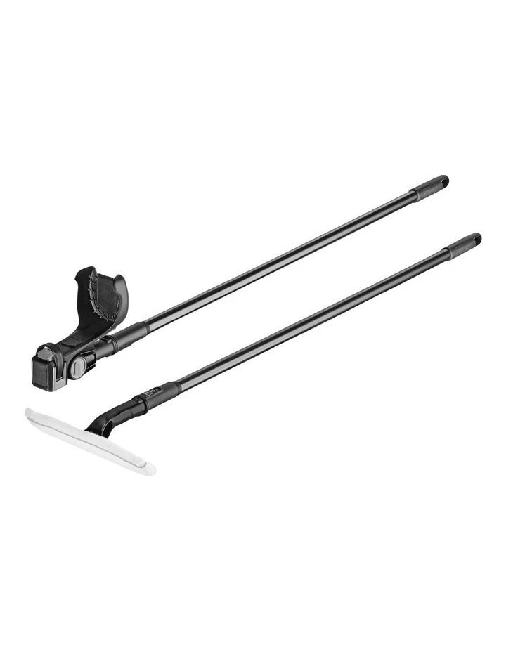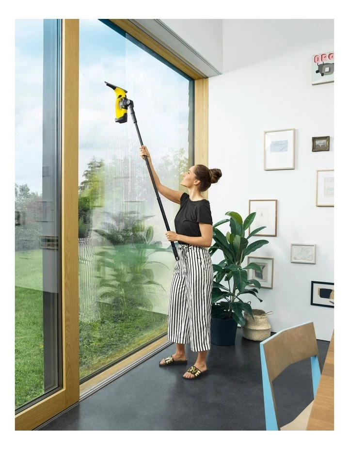 You can now clean high windows, skylights and other difficult-to-reach smooth surfaces conveniently and without having to haul yourself up a ladder: This is made possible by the telescopic extension kit for our Window Vac and the vibrating cordless wiper. The set consists of two telescopic lances, an intake with flexible joint for the Window Vac and cordless wiper, as well as a wiper with microfibre cloth. The set offers up to 1.5 metres of additional reach so that living rooms, bathrooms or conservatories up to a height of approx. 3.5 metres can be cleaned effortlessly even by shorter people.