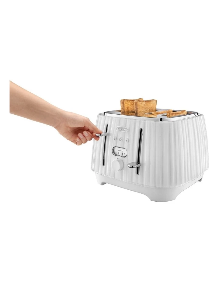 - Easily remove smaller slices of toast by simply lifting the lever.