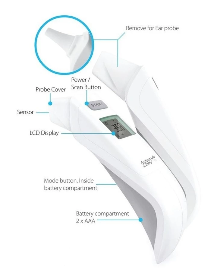 With revolutionary Accuscan technology exclusive to Cherub Baby. Whilst in forehead mode the accuscan technology takes a continuous reading across key points on the forehead to calculate a more consistent and more accurate temperature than achieved from a single reading that most thermometers on the market take.