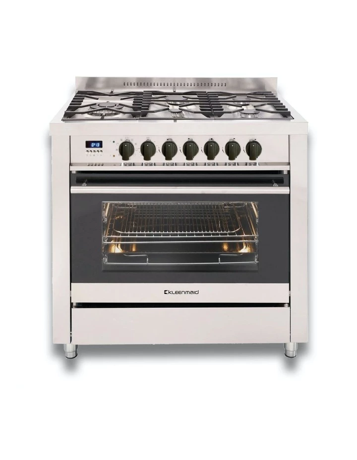A beautiful mirror polished stainless steel finish is what sets the massive 109 litre Kleenmaid OFS9021 freestanding dual fuel oven apart from the rest. The oven has 10 functions and two levels of fully extendable telescopic guides for safety and convenience. The gas cooktop boast our E.E.B. Energy Efficient Italian gas burners, which provide more heat at less cost.