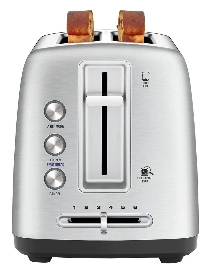 Lift and Look allows you to lift the toaster carriage lever without interrupting the toasting cycle to check progress at any time and ‘A Bit More’ button for, well… that little bit more. Together with extra wide and deep, self centering toasting slots to cook each slice evenly, this toaster makes it easier to get toast the way you like it.