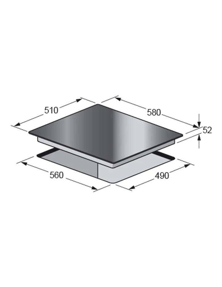 - 60cm black glass Induction cooktop with chrome metallic graphics and bevelled edges