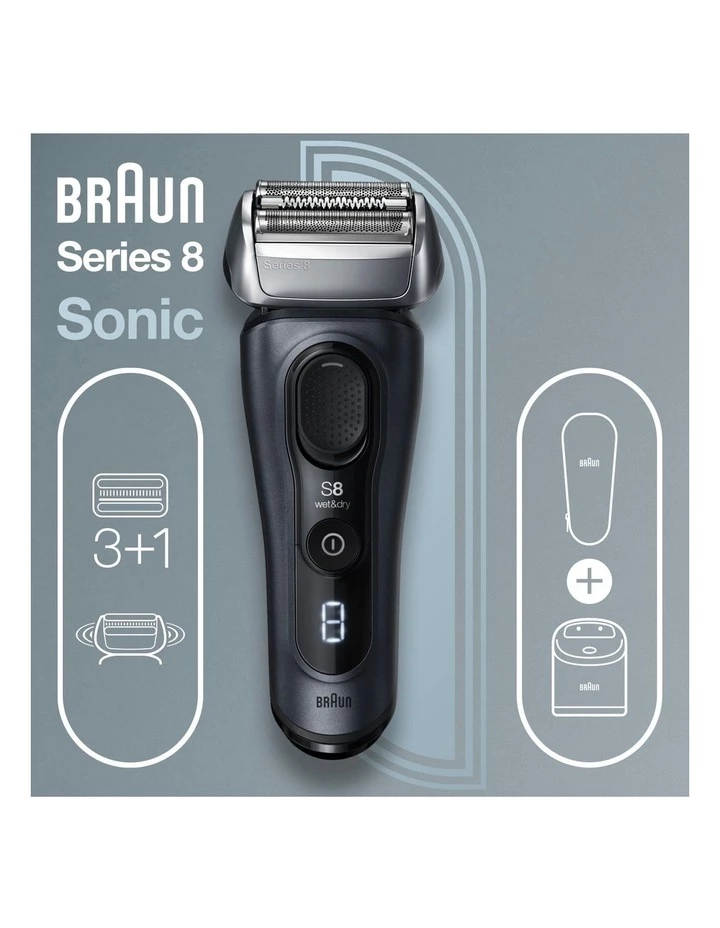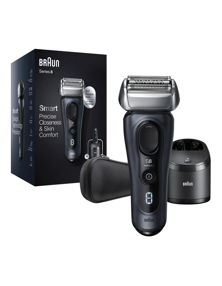 The Braun Series 8 electric shaver provides a powerful, yet gentle shave. It features Braun’s unique Sonic Technology that uses 10,000 micro-vibrations to help capture more hair with gentle glide on the skin. This electric razor has a 40 swiveling head that adapts to the facial contoursensuring a close shave even in tricky areas. Use precision trimmer for trimming long hairs. The Precision Switch locks the shaver’s head and enables you to easily capture tricky hairoffering unparalleled precision and control.