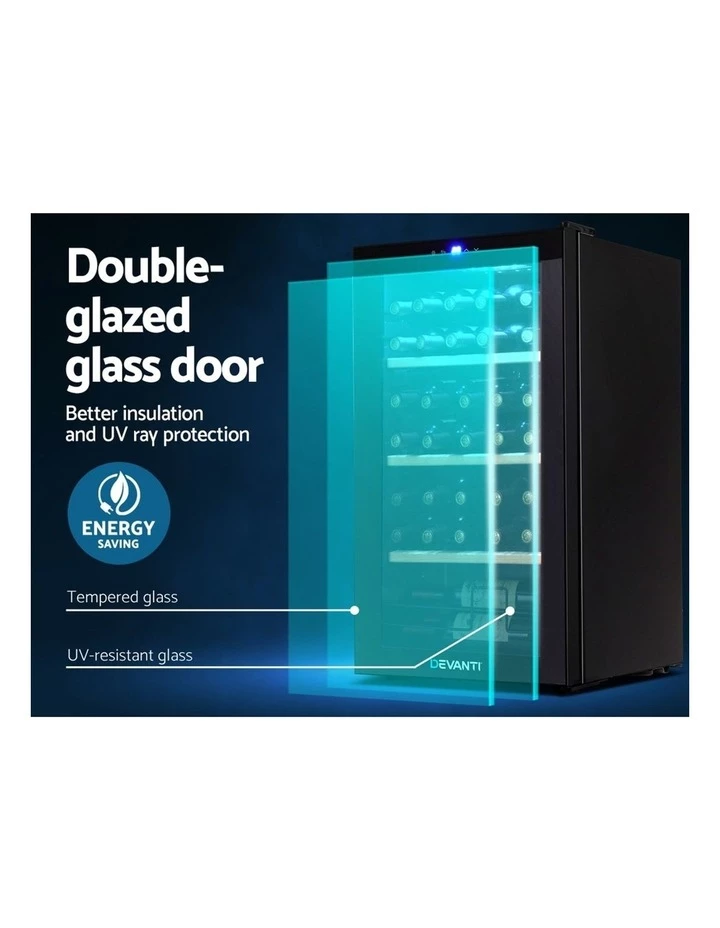 The shelves are removable, allowing you to change the layout according to the contents and for easy cleaning. Better still, the double-glazed glass door is UV-resistant and provides excellent insulation along with the 30mm thick foam wall. The ensemble works quietly and efficiently and has a handy child-lock on its control panel for total peace of mind. Dont trust just any product with your precious vintages, trust Devanti.