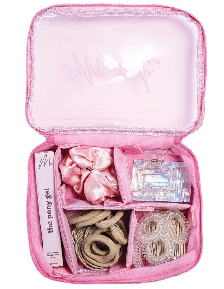 Never settle for a dull up-do again with The Pony Kit in Extra Light! This super cute beauty case has all your hair basics suited to your mane shade in one place. With a variety of hair ties, bobby pins a-plenty, an easy-to-pack comb and our special Pony Gel formula, you have everything you need for the perfect up-do. Plus, you can move or remove the dividers to fit your accessories or makeup.