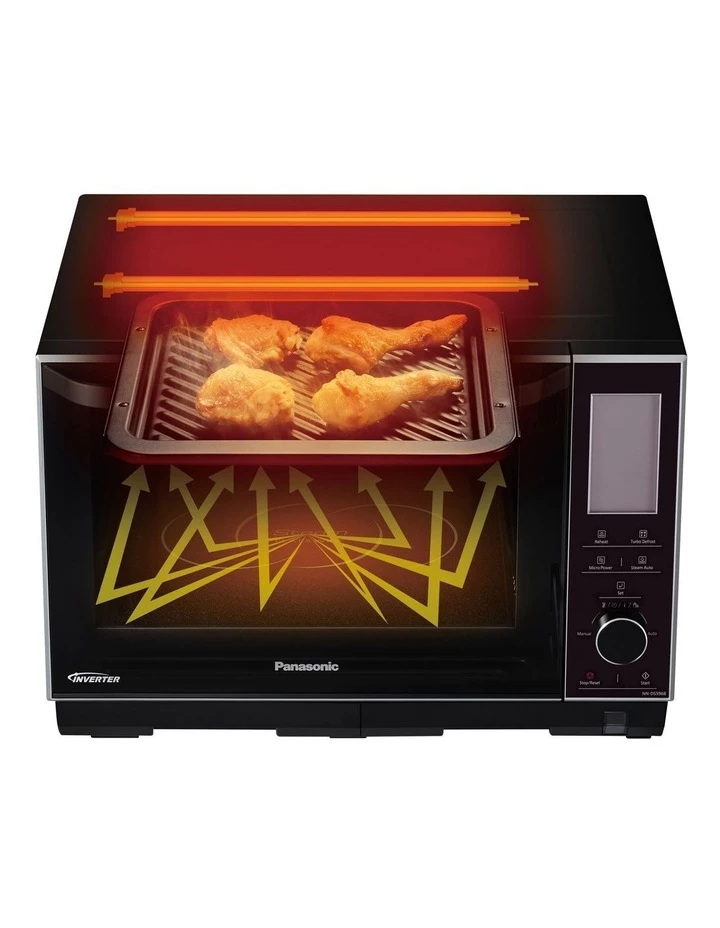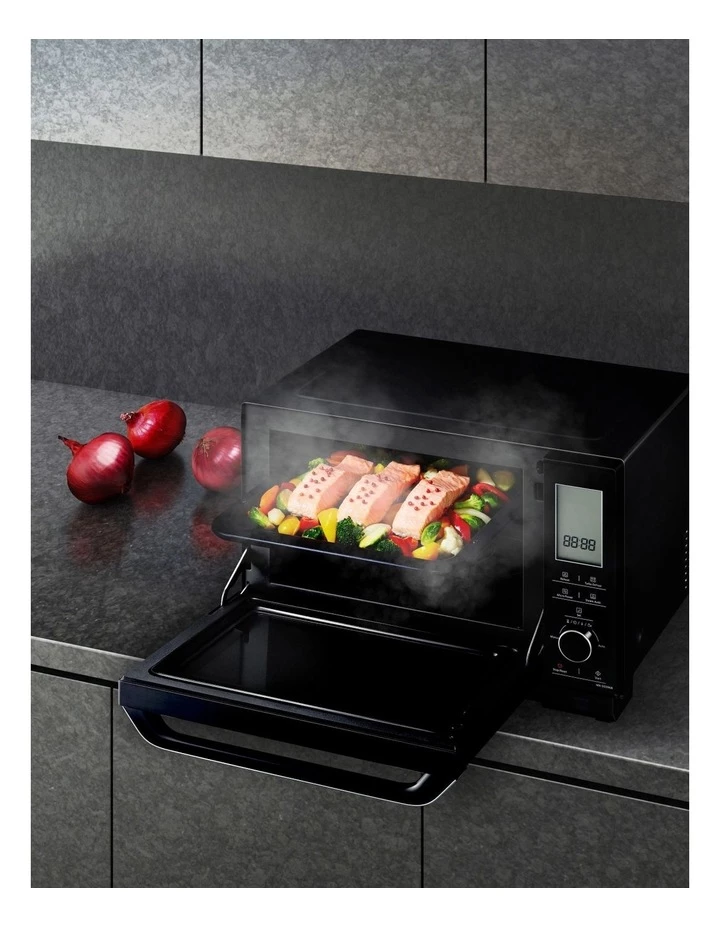 With new Turbo Steam and Crispy Grill technology and simultaneous 4-in-1 (steam, oven, grill and microwave) cooking, this 27L combination oven makes it easy to prepare fresh food in a flash. The compact body features a pull-down door to free up kitchen space, while a flatbed design maximises the internal cooking area.