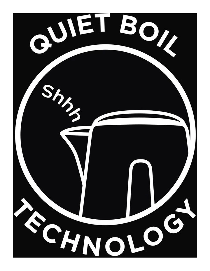 - Features: Matte black on-trend accents; Quiet boil technology; Perfect pour spout; Removable, washable filter