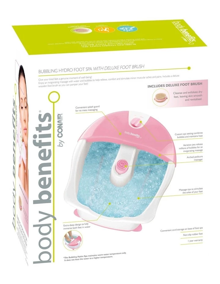 - Features: Aeration jets release millions of bubbles for an invigorating massage. Massage tips to stimulate the soles of your feet. Arched pedicure massager. Maintains heat for extra comfort*. Convenient splash guard for no mess massaging
