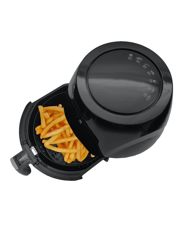 Love your fries but don’t want to ruin your diet? Want to reduce your oil intake? The Air Fryer is just for you! This fryer uses unique air technology to let you fry without having to use any or little oil to ensure you get that crispy skin on the outside but tender on the inside. Make healthier, easier and faster food with the Kitchen Couture Air Fryer. This fryer evenly circulates hot air rapidly around food from all sides at once without the need for oil like conventional methods but still creates the crispy outer layer you desire. This means food prepared by the air fryer contains up to 80% less fat, making your guilty pleasures a healthier choice. Features 5.5-litre capacity, a 60-minute digital timer, and backlit digital touchscreen. An absolute must-have in every kitchen, it looks stylish enough to be the centre of attention on your counter. Dishwasher safe but not recommended because non-stick coatings might be damaged.