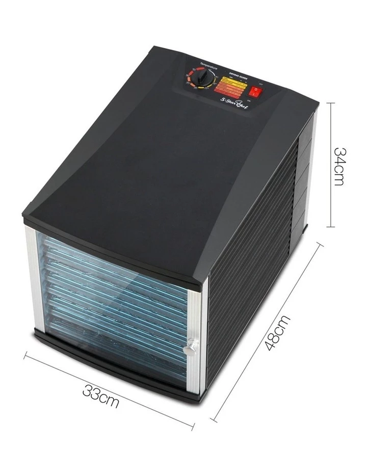 Made from ABS plastic, the food dehydrator feature a complete drying system. Included is a flame retardant door to prevent heat loss.