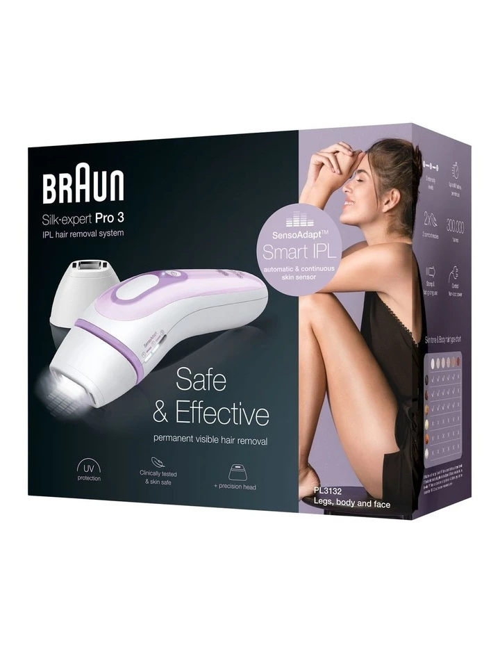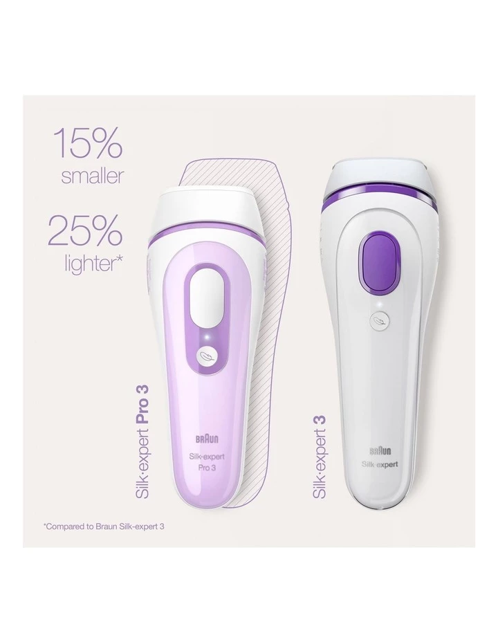 Silkexpert Pro, Brauns latest generation IPL. Silkexpert Pro 3 ensures permanent hair reduction in just 3 months*. The safest IPL technology, clinically tested and dermatologically accredited as skin safe by a leading international skin health organization (Skin Health Alliance). The only IPL that automatically and continuously adapts to skin tone for a safe and effective permanent visible hair removal. Now with a precision head to tackle smaller areas like the face, bikini line or underarms. Get results 2 times faster than with previous Silkexpert 3: just 9 minutes for both legs. 300,000 flashes, 20% more than previous Silkexpert 3.