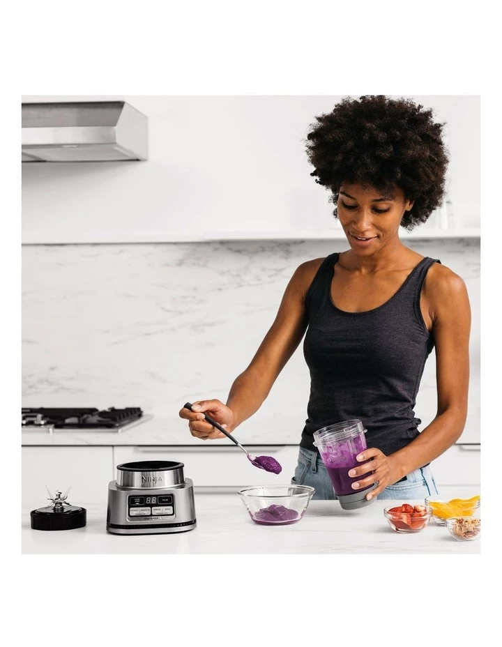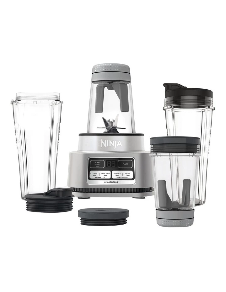 Ninja Foodi Power Nutri Duo blender with smartTORQUE is designed to power through the thickest ingredients at high speed and never stall. One base with multi-functions. The Power Nutri Cups with to-go lids for smoothies and extractions. The Power Nutri Bowls with Power Paddle powers through frozen foods with less liquid for thick smoothie bowls and nut butters. 1100-watt power-dense motor.