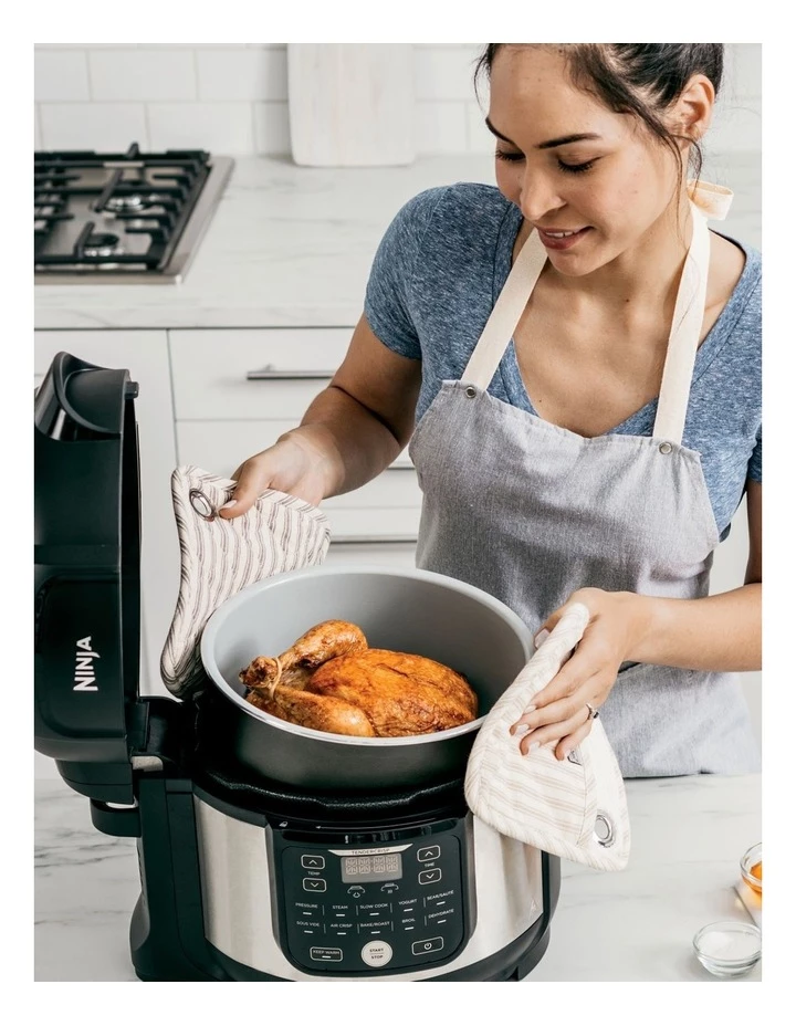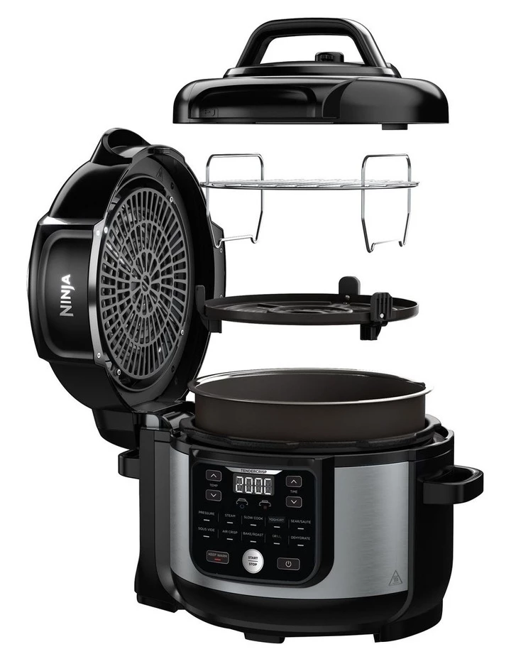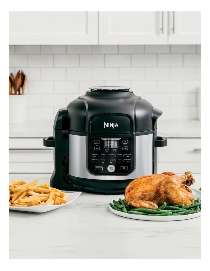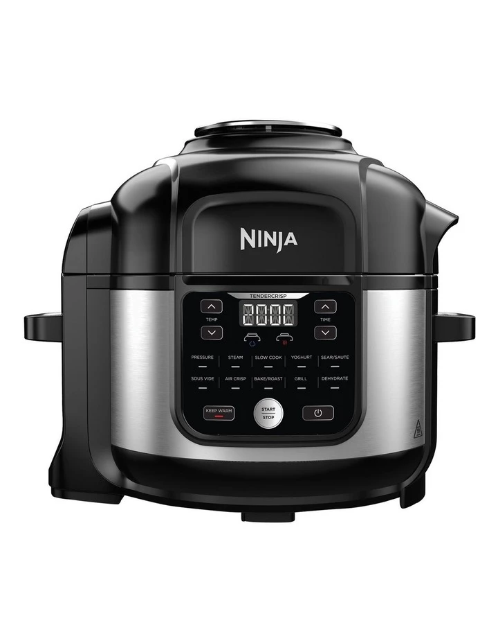 Get the best of pressure cooking and air frying all in one pot with the Ninja Foodi 11-in-1 6 litre Multi Cooker. All the features of the original Foodi now with 3 extra functions Yoghurt, Sous Vide and Dehydrate and with a premium Stainless-Steel finish. TenderCrisp Technology lets you quickly pressure cook to lock in juices then swap lids to finish with a crisp. Precision Cook Control manages bottom heating element temperatures to precisely cook food. 7 litre cooking pot is non-stick and easy to clean.